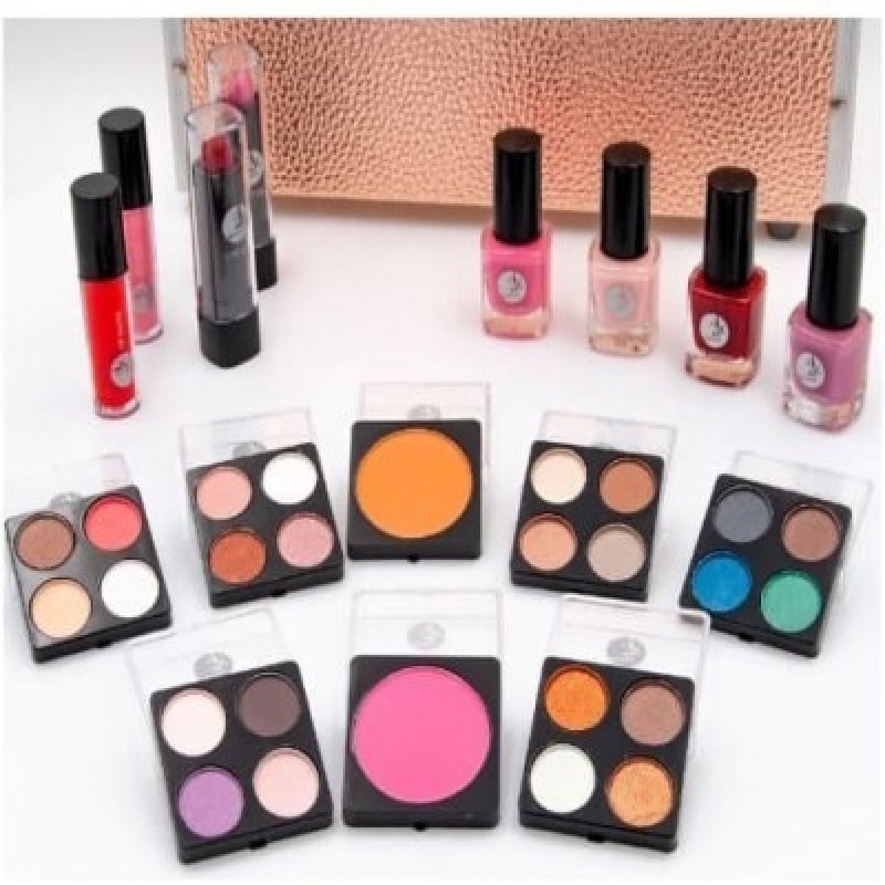 Мой первый косметический набор - лучший подарок для девочек, начинающих пользоваться косметикой. В чемоданчике есть все необходимое для созданиявыразительных и ярких черт лица, для коррекции овала, скул и губ. Двадцать четыре оттенка теней для век с широким цветовым спектромпомогут создать любой образ - от тотального NUDE до классического Смоки Айс. Румяна модных в этом сезоне оттенков - морозный румянец и нежныйперсик. Два оттенка помады для губ - насыщенный красный и фламинго - поддержат любой ваш образ. Для любителей глянца предусмотрены два блеска для губ модных в этом сезоне чувственных оттенков. Также в комплекте есть три карандаша для глаз - черный, коричневый и цвет дождя, один карандаш для губ цвета пыльнойрозы. В наборе предусмотрены кисть для румян и три аппликатора для теней и помады, модных оттенков лака для ногтей - спелая вишня, пыльная роза, нюдовый икоралловый. Чемоданчик оснащен зеркалом и футлярами для теней. Отличный подарок на все случаи жизни.
