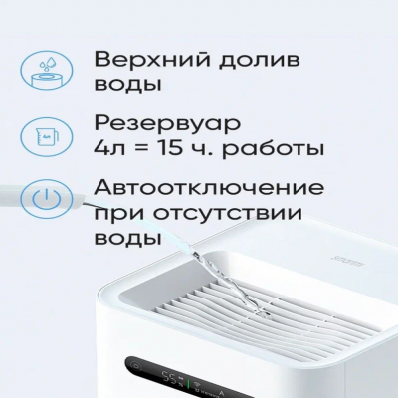 | Доп. опции увлажнителя | Автовыключение; Автоматическое отключение без воды |