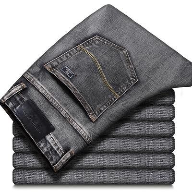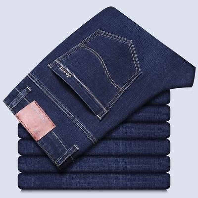 Повседневные демисезонные мужские эластичные джинсовые брюки в классическом стиле прямого кроя
