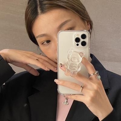 Симпатичный 3D прозрачный медведь кольцо держатель стенд чехол для телефона для iPhone 13 12 11 Pro
