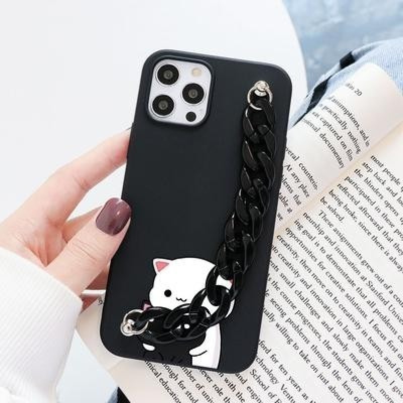 Симпатичные чехлы для телефона Cat с цепочкой для iPhone 12 11 Pro 8 7 6 Plus 5 SE 2020 X XR XS Max