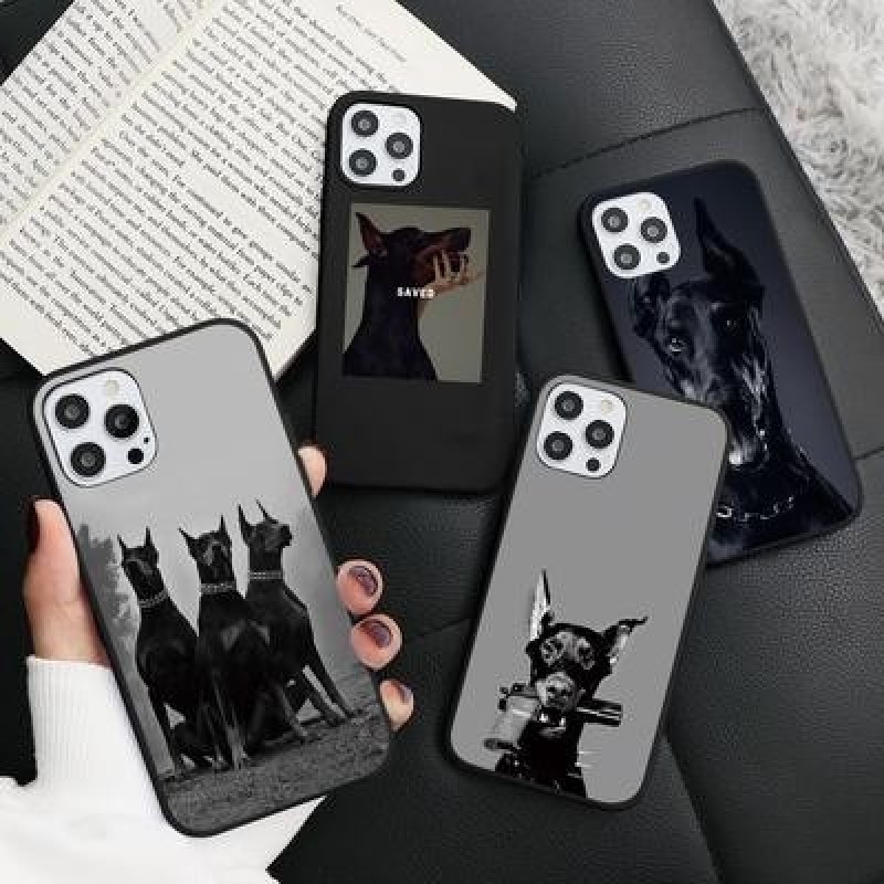 Доберман Полицейская собака Силикон мягкие черные чехлы для телефона для iPhone 13 12 11 Pro Max XS