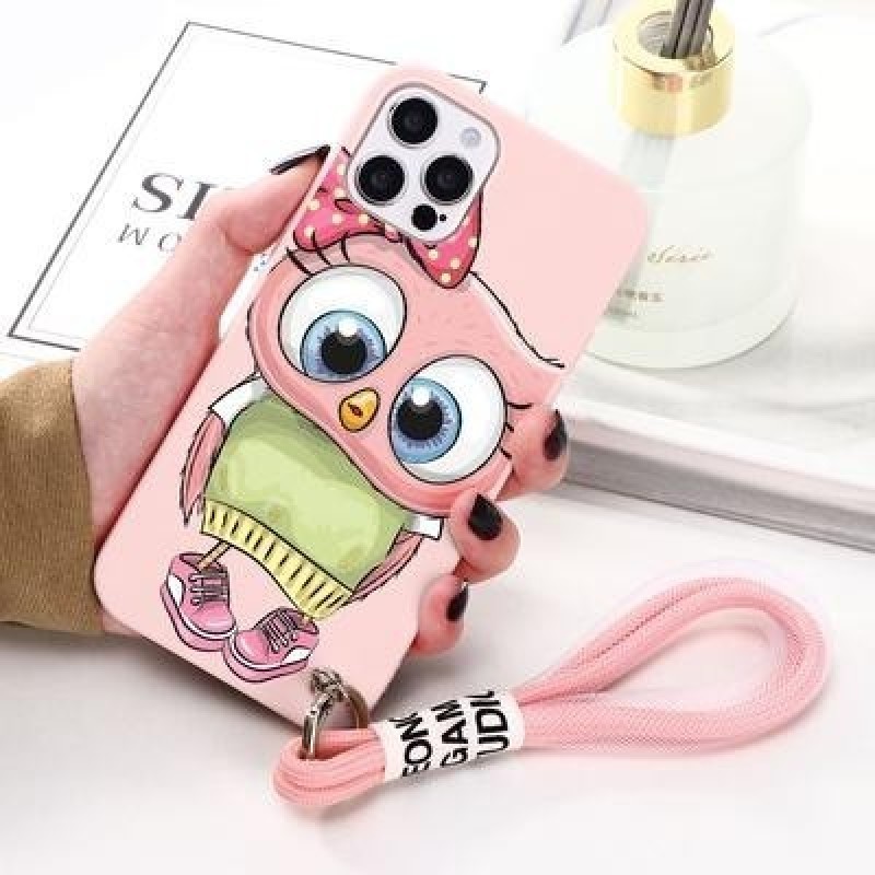 Симпатичный Сова Мультяшный ремешок Ремешок для телефона Чехол для iPhone 13 12 11 Pro Max Xiaomi Mi