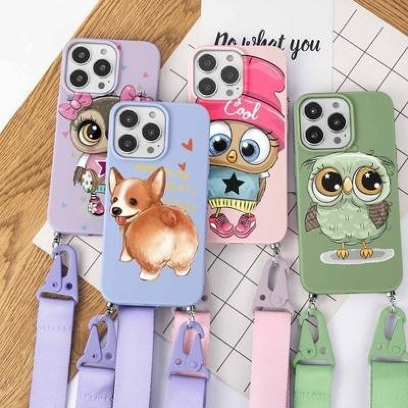 Мультфильм Сова Симпатичная собака Ремешок Чехол для телефона с шнуром для iPhone 13 12 11 Pro Max X