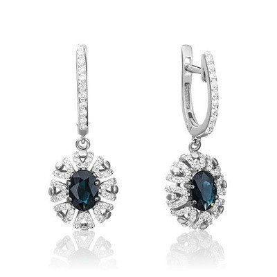 PLATINA Серьги с английским замком из белого золота 585 пробы c сапфиром и бриллиантами ₽79700.0 |