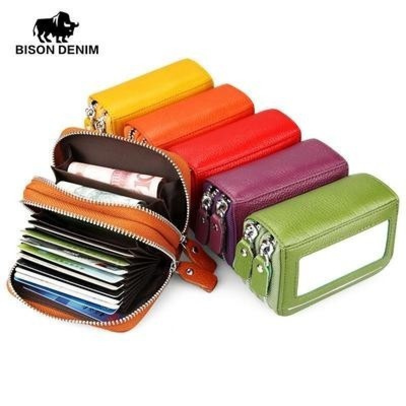 Мода Женщины Подлинная кожа Держатель кредитной карты Кошелек Большая емкость Двойная молния Женский