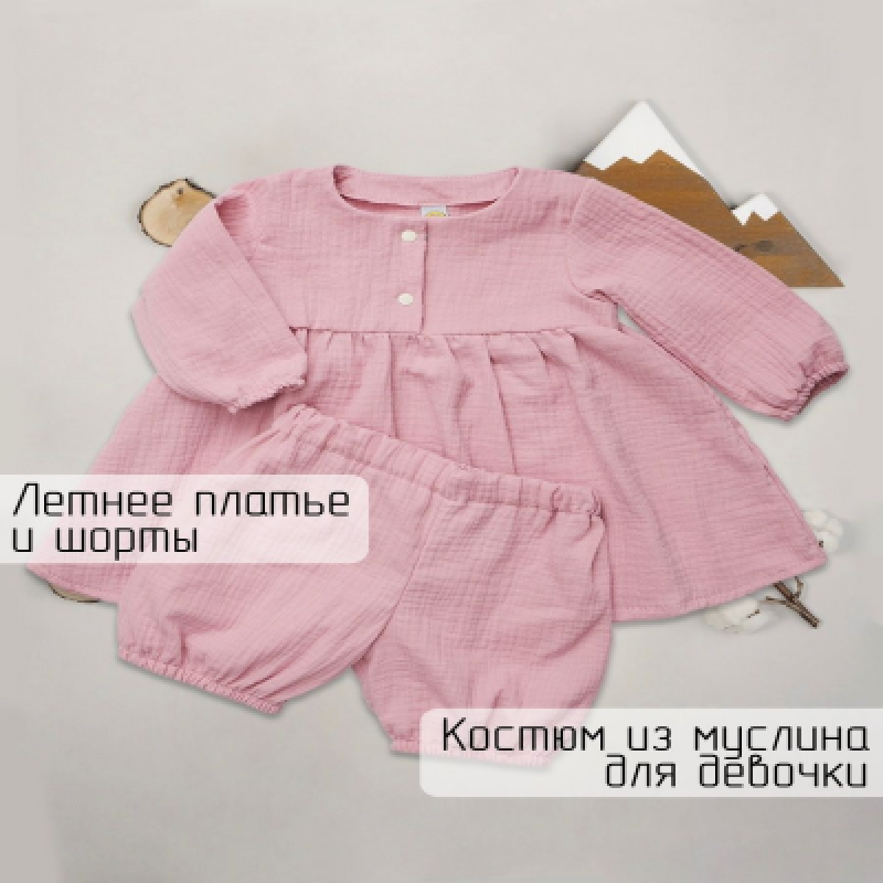 НазначениеТуника пляжная для новорожденных с шортами; Платье для новорождённой девочки муслин; Костюм для девочки в подарок муслиновый