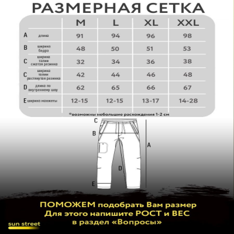 Наша размерная сетка на данную модель брюк находится на 2 или 3 фотографии в карточке! Пожалуйта, ориентируйтесь на нее при выборе размера. Модная одежда для парней и девушек - это то, в чем нуждается молодежь 21 века. Жмите кнопку "Добавить в корзину", чтобы не упустить свой шанс. В нашем магазине на этой неделе у вас есть возможность приобрести по Специальной цене мужские брюки карго, которые по-другому называются джоггеры или спортивные штаны с карманами. У нас вся одежда унисекс, поэтому вам не стоит переживать насчет того женская та или иная модель или мужская! Все очень просто - берите любую. Стильная молодежная унисекс одежда - это лучший подарок мужчине\женщине, парню\девушке, мальчику, любимому, другу\ подруге на день рождения, новый год, 23 февраля, 8 марта или другой праздник. Брюки мужские подходят для спорта и активного отдыха. Джогеры универсальны и практичны, благодаря удобному крою их можно надеть на прогулку, для занятий спортом, в поход, или длительное путешествие. Благодаря широкой резинке на талии и завязкам их можно подогнать по фигуре. Данные молодежные штаны выполнены из высококачественного материала - полиэстр, который отличается высокой прочностью, износостойкостью и долгим сроком службы. Брюки не растягиваются и не выцветают. На фотографии в карточке брюки размера M на парне ростом 170см. В нашей санстрит коллекции представлены: одежда для женщин и мужчин;модная одежда для подростков и взрослых;корейская одежда с аниме;брюки летние и зимние, джинсы широкие, молодежная оверсайз и спортивная одежда, спортивки oversize, чиносы, штаны больших размеров с карманами в японском стиле.