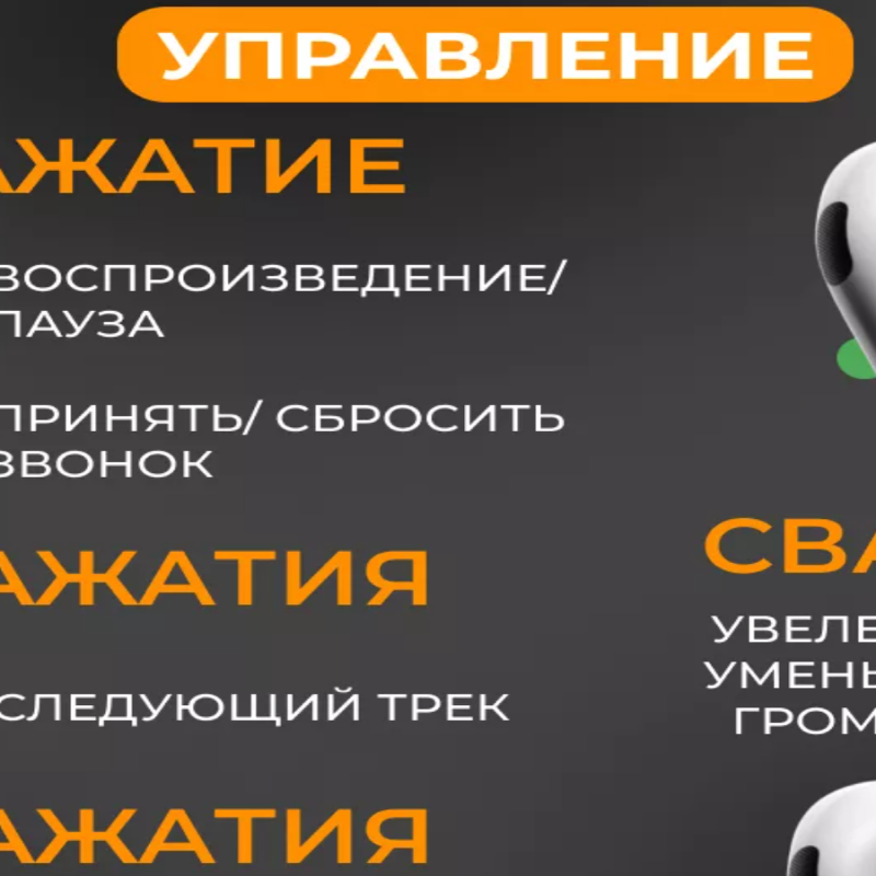| Доп. опции наушников | сенсорное управление вызовами и музыкой; стереонаушники капельки для работы и игр на ПК; анимация при подключении к iPhone |