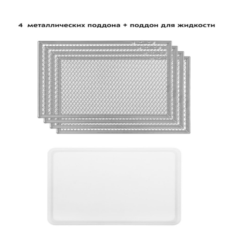 | Комплектация | пластиковый поддон 1 шт; инструкция с гарантийным талоном; сушилка; поддон - 4 шт. |